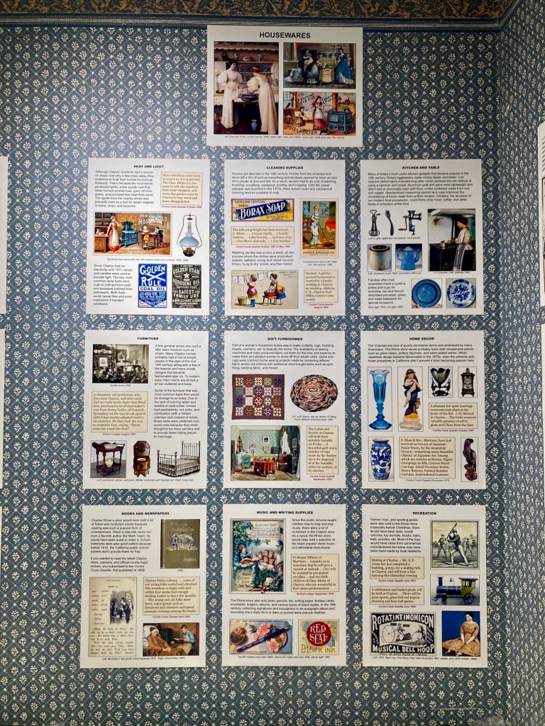 When U. S. history classes talk about the 1850s and 1860s, they only cover major events such as the Civil War, California gold rush, and first transcontinental railroad. They never mention the fun stuff like what day-to-day life was like for the average citizen. Let the Clayton Historical Society’s new exhibit, Life in Clayton 1850-1870, take you back in time to see how ordinary Clayton residents lived, worked, played, dressed, cooked, and celebrated. Along the way the exhibit tells many stories about Clayton such as the wedding scam, cream ale brewery, arson insurance fraud, “Electro-Magnetic” doctor, copper mining boom, hotel gong, and the 1864 fire that destroyed the town. Once you see the exhibit, you’ll feel closer to the past and have a greater appreciation for the modern conveniences we take for granted.